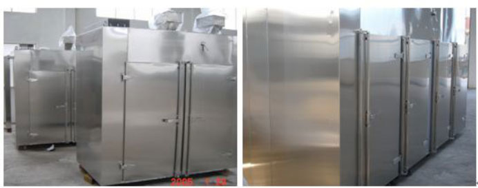 | 技术参数 型号规格 | 每次干燥量 (Kg) | 风机功率 (KW) | 耗用蒸汽 (Kg/h) | 烘车 (辆) | 烘盘 (只) | 外形尺寸 L×W×H(mm) | 上下温差 (℃) |