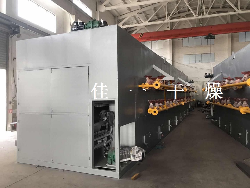 - 湿物料通过螺旋加料器连续地加到干燥器上部第一层干燥盘上,带有耙叶的耙臂做回转运动,使耙叶连续地翻转物料,物料沿着指数螺旋线流过干燥盘表面,在小干燥盘上的物料移到外缘,并在外缘落到下方的大干燥盘外缘,在大干燥盘上的物料向里移动并从中间落料落入下一层小干燥盘中,大小干燥盘上下交替排列,物料得以连续地流过整个干燥机,中空的干燥盘内通入加热介质,加热介质从一端进入另一端导出,已干燥的物料从最后一层干燥盘落...