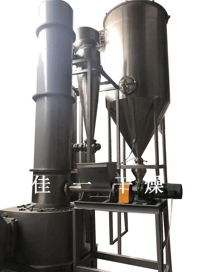 - 当物料加入到干燥机后,处于旋转的流态化状态,团块受到破碎后直径迅速减小,水分被蒸发。物料在气体的夹带下作螺旋上升运动,粒径较小并干燥的物料在内环,较大较湿的物料产生的离心力大,在外层靠近器壁。但外层的大颗粒在不断被破碎干燥,离心力变小后也向内环运动,当水分满足要求后被气体带出。